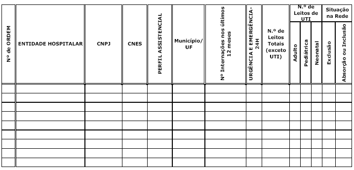 II –PARA ALTERAÇÃO DA REDE HOSPITALAR – SUBSTITUIÇÃO E/OU REDIMENSIONAMENTO