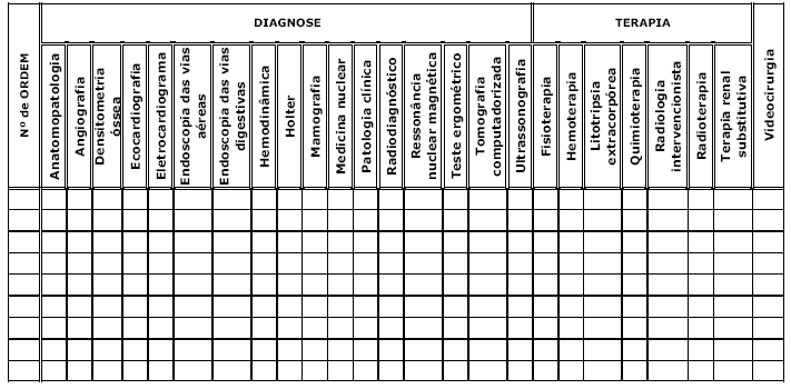 Serviços Especiais de Diagnóstico e Terapia – Contratação (S) ou não (N), na entidade hospitalar correspondente, dos serviços de diagnose ou terapia referidos: