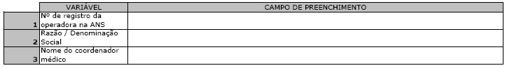 1. Nº de registro da operadora na Agência Nacional de Saúde Suplementar (ANS): Número de 06 (seis) dígitos, que identifica a operadora junto a ANS.