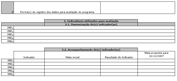 3.2. Acompanhamento do(s) indicador(es): Refere-se à descrição do indicador, da meta inicial, do resultado do indicador e da meta proposta para 31/12/2007, conforme descrito abaixo.