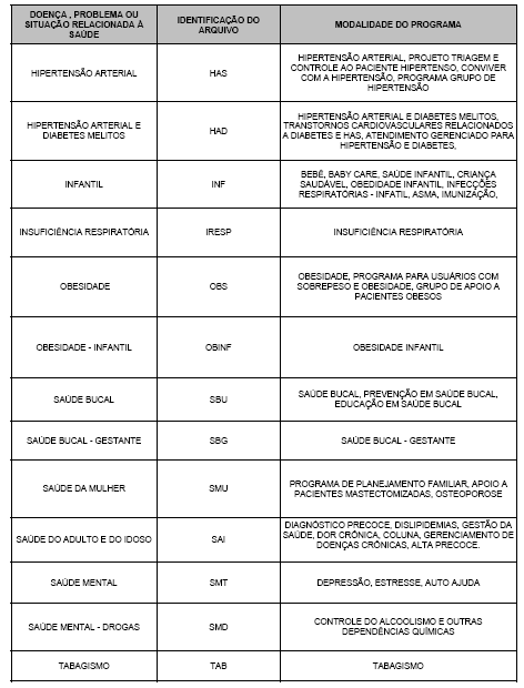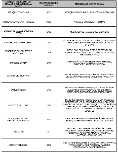 1.2 Para fins de preenchimento, as letras XXX, que são a identificação da doença, problema ou situação relacionada à saúde do programa poderão conter entre três e quatro dígitos. Segue quadro orientador.