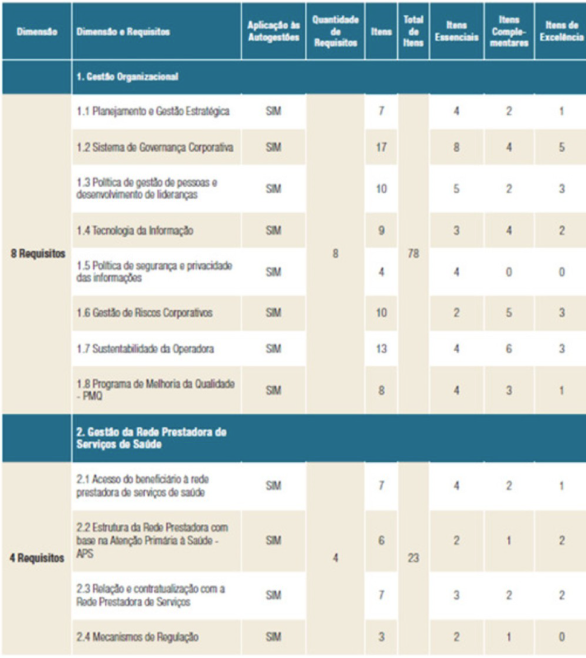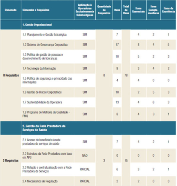 Por fim, considerando que há 26 itens de excelência, distribuídos em 16 requisitos, é necessário que a operadora do segmento exclusivamente odontológico cumpra, ao menos 21 itens de excelência (80% x 26) para atingir o nível máximo (Nível I) da acreditação, conforme critérios definidos para os níveis de acreditação no corpo da Resolução Normativa.